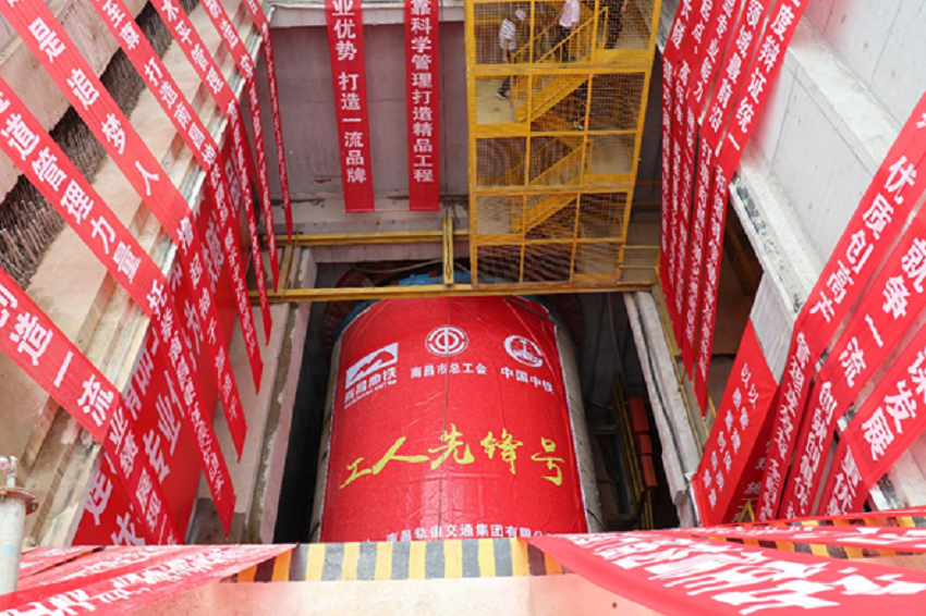 ▲2019年5月27日,“工人先鋒號”盾構機在東新站始發,標志著南昌地鐵4號線正式開啟“千里贛江最長隧”施工