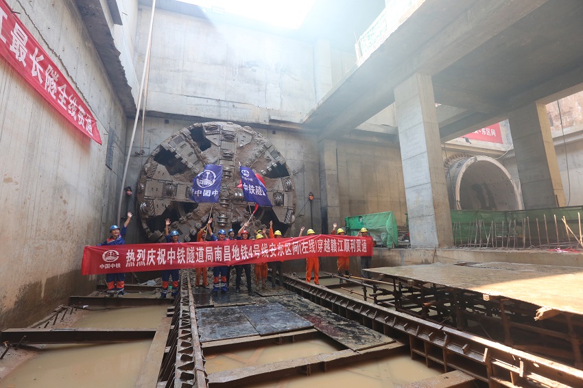 7月22日,南昌地鐵4號線02標(biāo)安豐站至東新站區(qū)間左線“共青團(tuán)號”泥水盾構(gòu)機(jī)順利接收,標(biāo)志著由中國中鐵承建的“千里贛江最長隧”歷時400余天后全段貫通。
