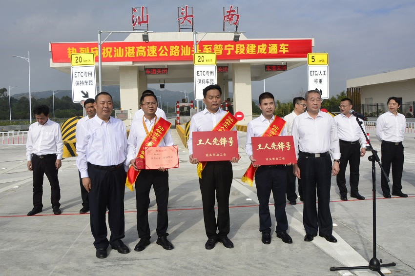上午10:00,廣東汕湛高速公路汕頭至普寧段通車慰問活動在汕頭南收費站入口舉行,活動全面展示了中國中鐵各參建單位的建設(shè)歷程和成果,廣東省交通運輸廳、汕頭市總工會向參與項目的中國中鐵建設(shè)者致以最誠摯的慰問,并頒發(fā)了先進集體、先進個人獎牌獎?wù)隆?/span>