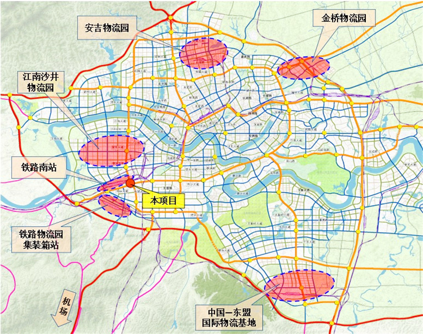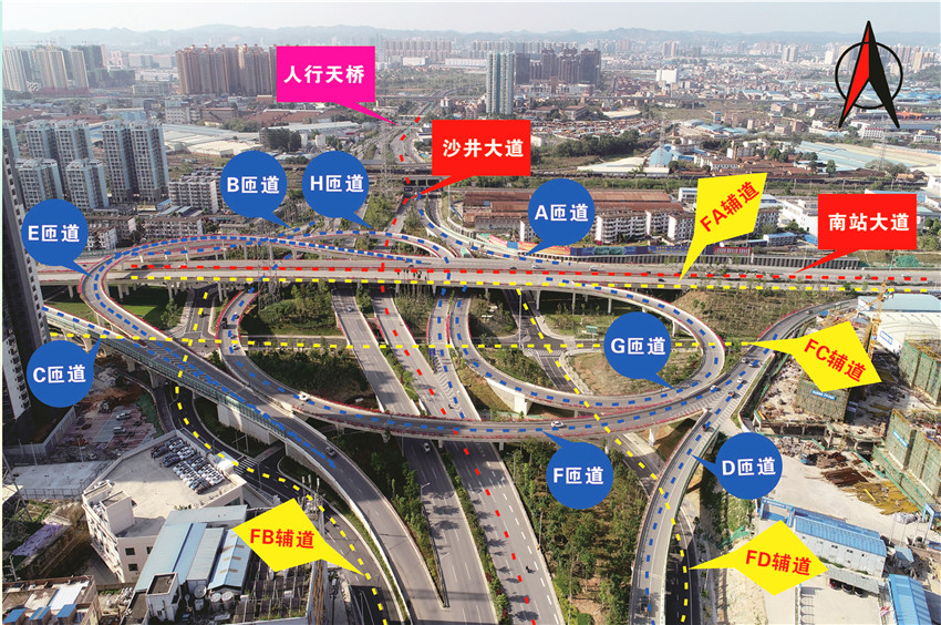 沙井—南站立交位于南寧市規(guī)劃“四縱四橫”快速路系統(tǒng)中的第三橫和第一縱交點(diǎn),處于兩大物流通道交點(diǎn),是各物流中心與中心區(qū)交通聯(lián)系通道中的重要轉(zhuǎn)換節(jié)點(diǎn)。南寧市沙井—南站立交工程是目前廣西范圍內(nèi)設(shè)計(jì)難度最大、施工情況最復(fù)雜、涉及面最廣的大型樞紐互通立交,結(jié)構(gòu)型式為“單首蓿葉與半定向型組合式的三層半全互通立交”,主要包含橋梁工程、道路工程、排水工程、綠化工程、照明工程、交通工程、景觀亮化工程,具有深基坑施工、高壓電塔下施工、地下綜合管線復(fù)雜及其整個(gè)立交工程數(shù)量繁雜、施工工期緊等綜合性特點(diǎn),安全風(fēng)險(xiǎn)大,且既有鐵路橋下為南寧市著名的十大內(nèi)澇點(diǎn)之一。項(xiàng)目總投資7.3億元,于2015年1月8日開(kāi)工建設(shè),2019年1月10日竣工交驗(yàn)。