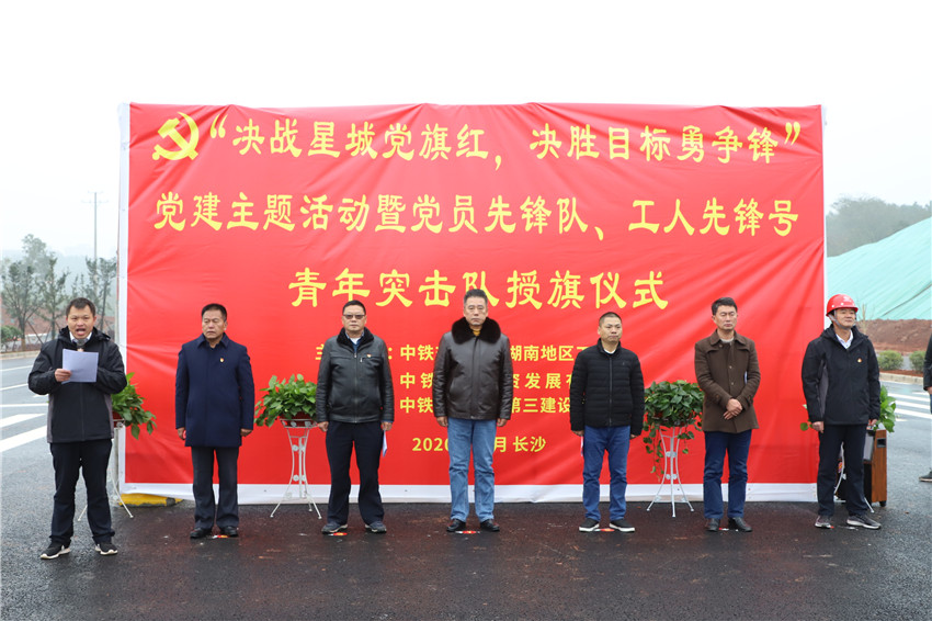 活動宣讀了《關于開展“決戰星城黨旗紅,決勝目標勇爭鋒”黨建主題活動的實施方案》,現場對黨員先鋒隊、工人先鋒號、青年突擊隊授旗,全體人員面向黨旗進行了宣誓,湖南地區黨工委書記對共建活動提出了要求。