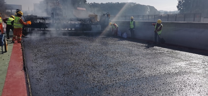 1月19日,歷經(jīng)近36小時(shí)緊張有序的施工,貴州雙龍項(xiàng)目下穿繞城高速鋼板梁橋面瀝青中面層攤鋪施工圓滿完成。