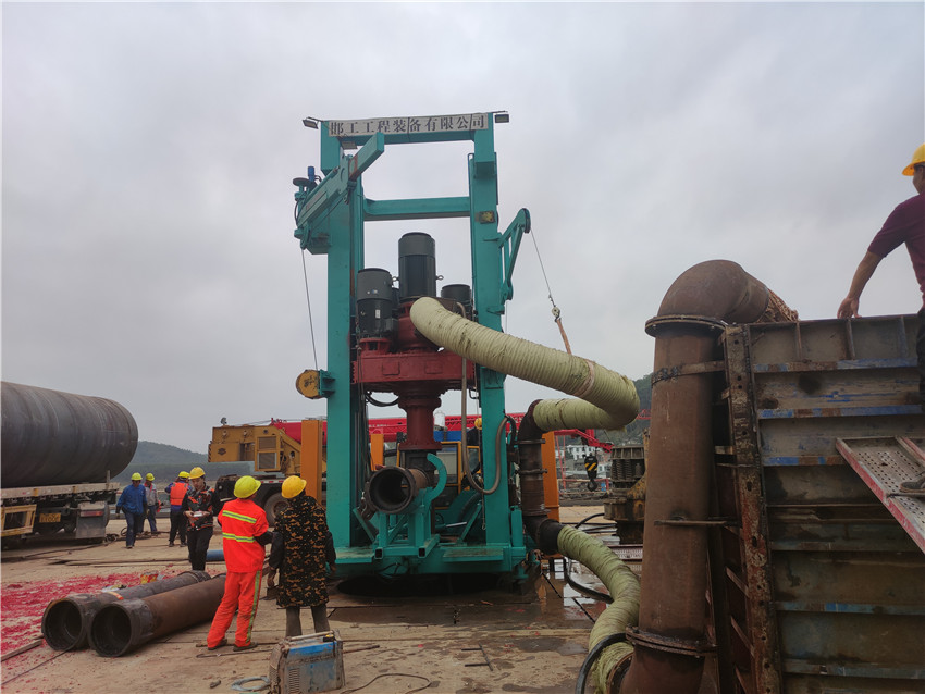 根據設計,沙坪河特大橋17#墩位于水中,水深3—5m之間,由于南寧市屬亞熱帶季風氣候,氣候濕潤,雨量充沛,地層由第四系沖積層粉質黏土、粉質黏土混砂、沖坡積層粉質黏土、坡殘積層土以及白堊系下統(tǒng)新隆組泥質粉砂巖和砂巖組成,且沙坪河周邊均為國家生態(tài)公益林,無法直接通過修建施工便道進入施工現(xiàn)場,前期施工極其困難。項目公司克服重重困難,經多方溝通協(xié)調,從沙坪河特大橋大里程側引入施工棧橋,并沿著棧橋搭設水上作業(yè)平臺,作業(yè)平臺共計2124㎡,鋼護筒44根(17#主墩樁基共44根,設計樁長39m),現(xiàn)場已具備開鉆條件。