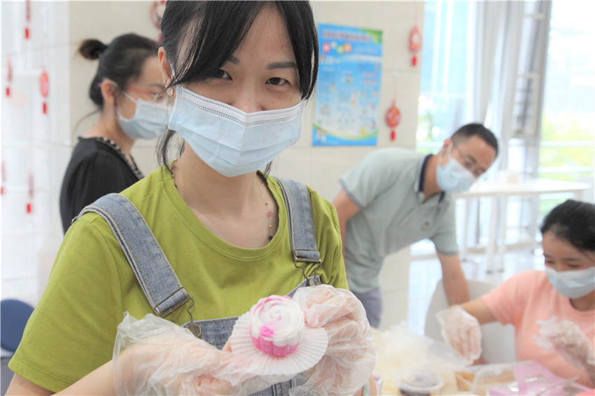 參加活動人員在專業烘焙老師的講解示范下,相互探討打月餅皮、揉餡、包月餅等環節,積極動手揉面、搟皮、包餡、整形,充分體驗到了制作月餅的快樂過程,呈現出了溫馨、和諧、團圓的喜慶氛圍。