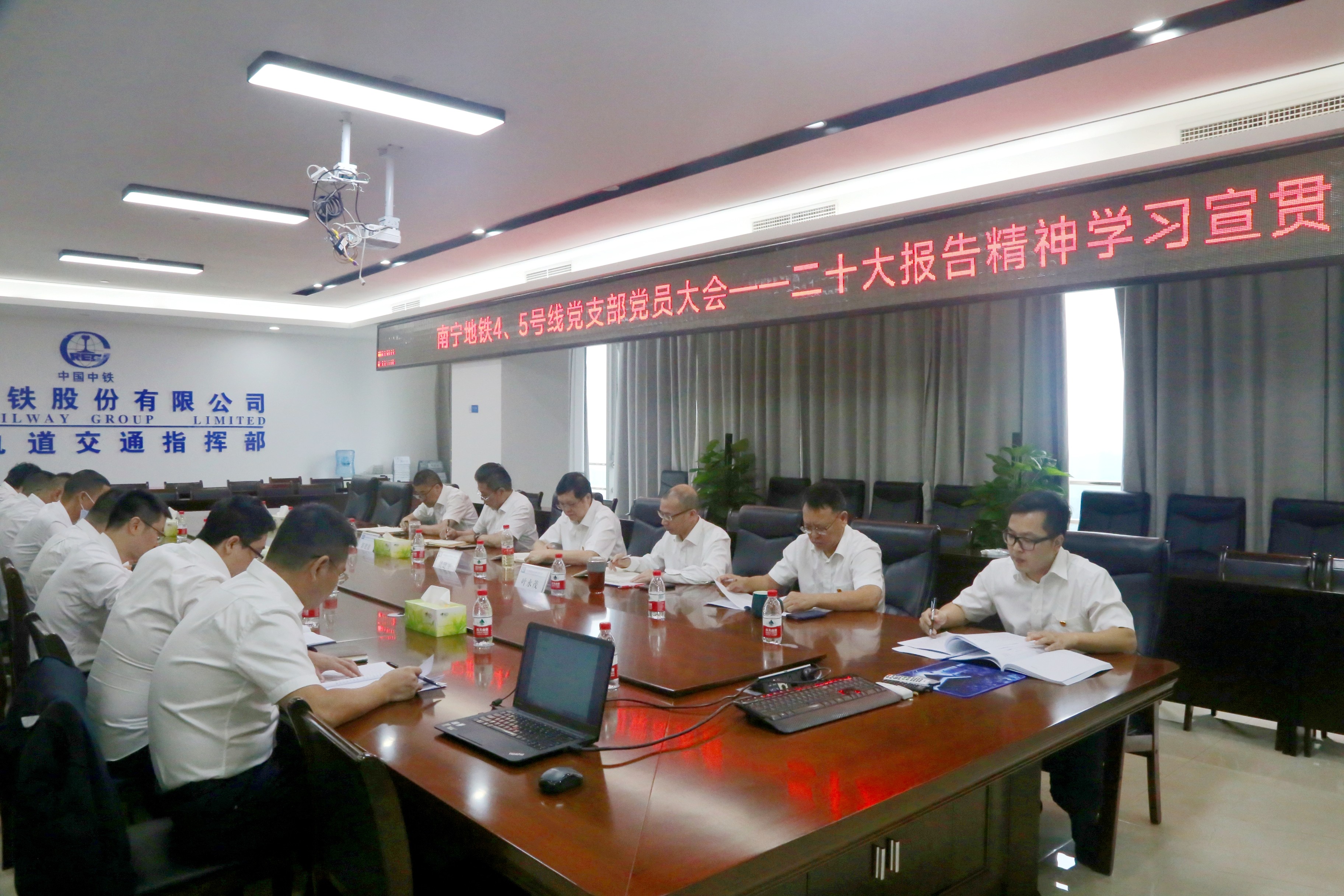 南寧地鐵5號線黨工委第一時間組織召開黨工委理論學習中心組專題學習會議及支部黨員大會,原原本本、逐字逐句學習黨的二十大報告,同時利用宣傳欄、微信公眾號等載體,廣泛宣傳黨的二十大精神,教育引導廣大黨員干部職工堅持黨建引領,踔厲奮發,勇毅前行,全面推動各項工作落實落地,取得實效,在南寧地鐵5號線及所屬各單位中切實掀起了學習宣傳貫徹黨的二十大精神熱潮。